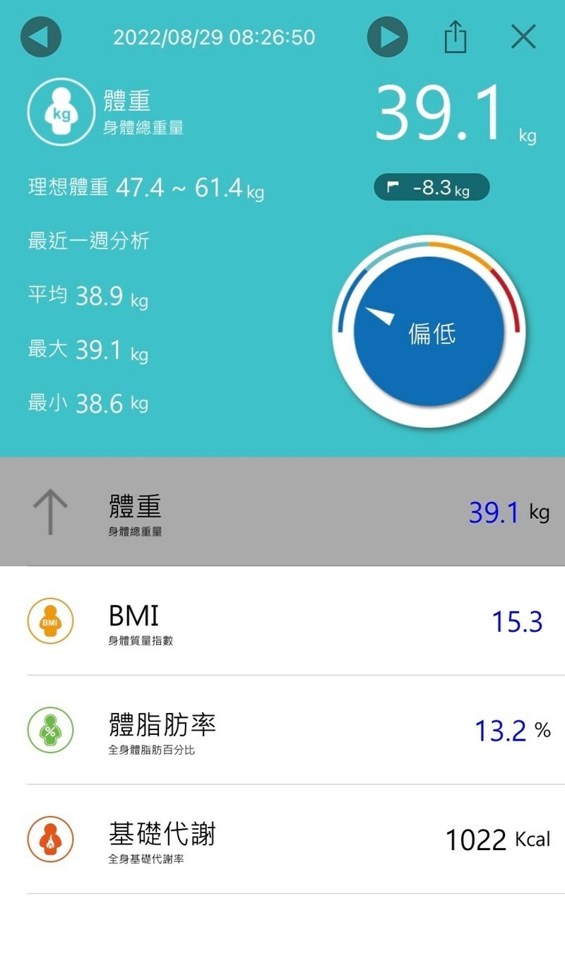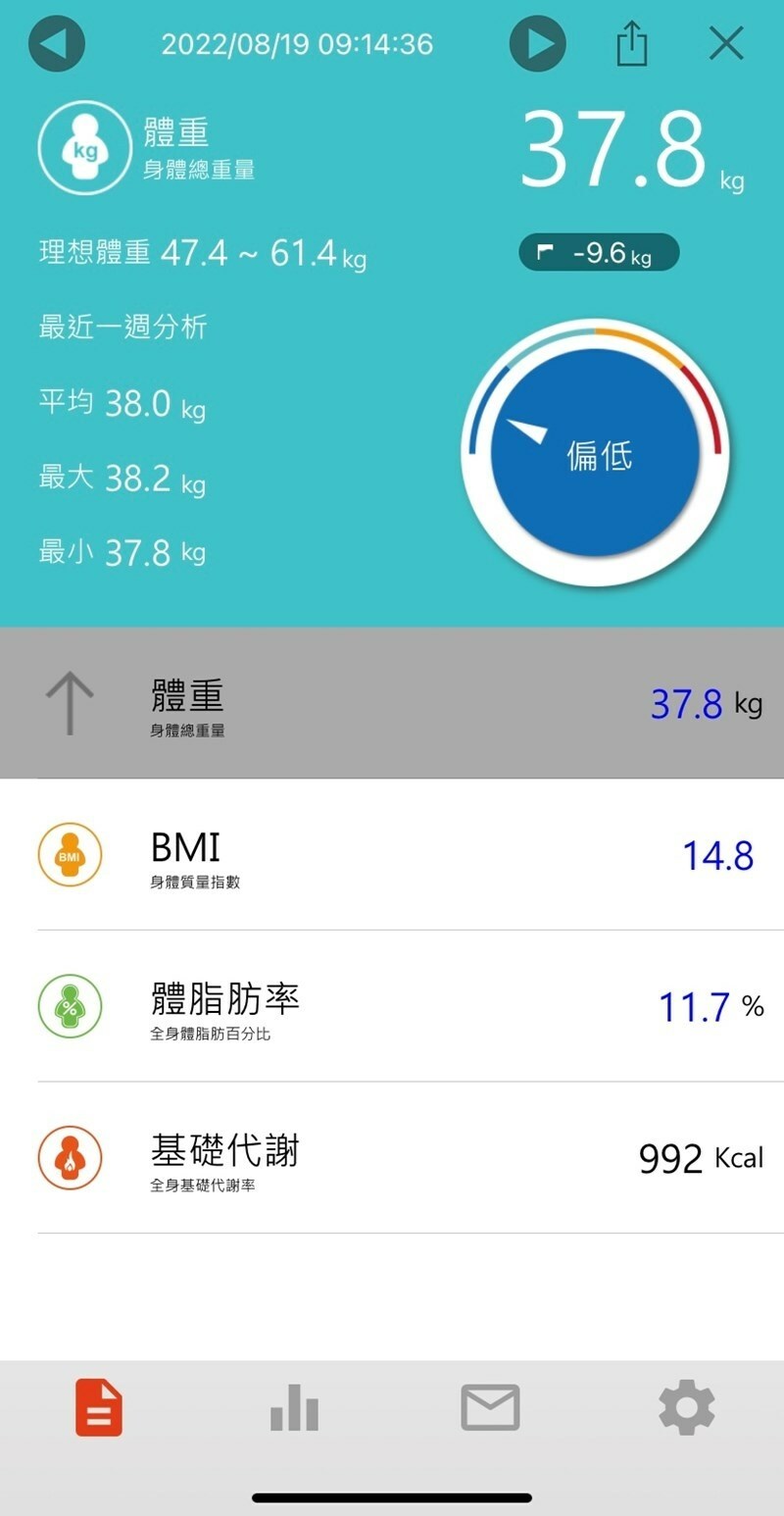 能每天確實掌握體脂、體重、BMI、體水分、肌肉量