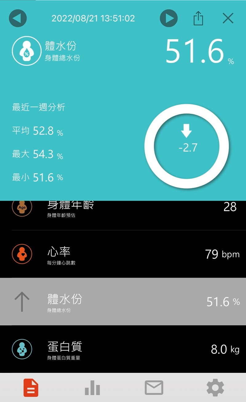發現我身體含水量及蛋白質都攝取不足 !基礎代謝率也很低