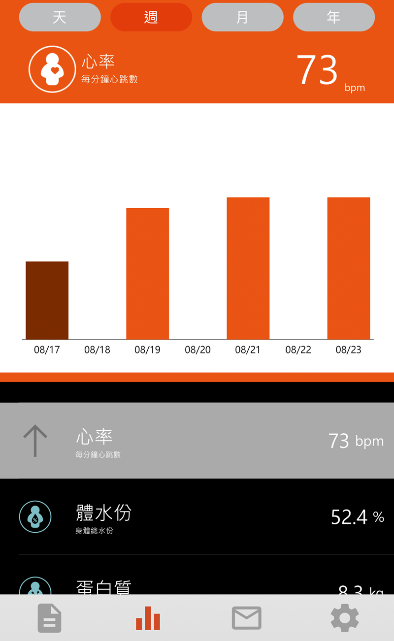 接著站上無線心率體脂計測量,體重、心率等數據會顯示於螢幕
