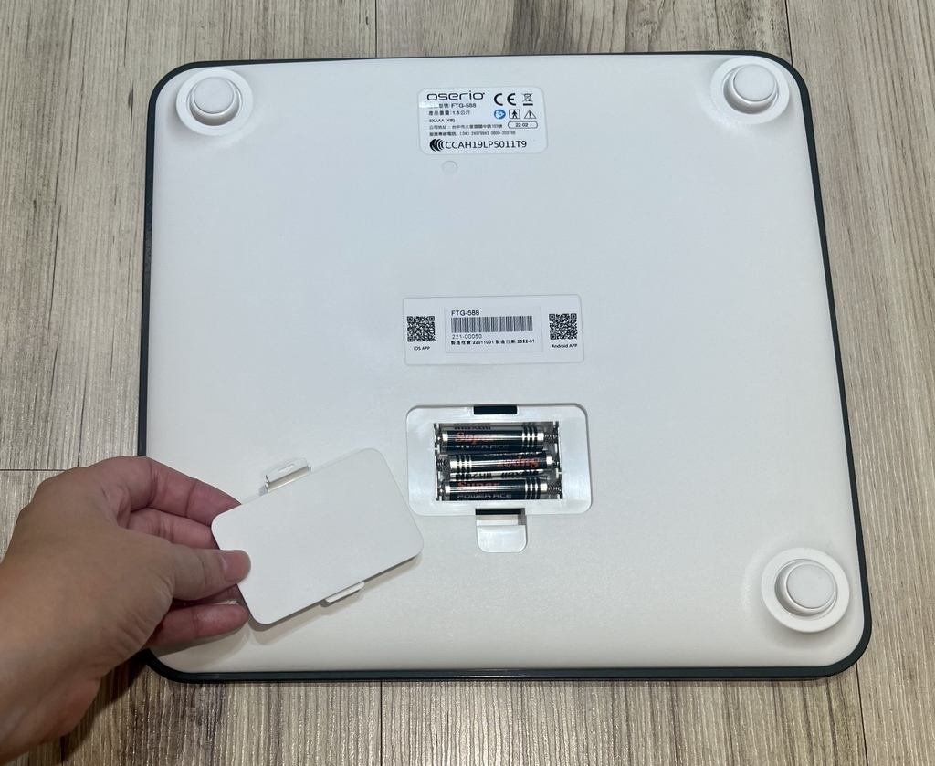歐瑟若心率體脂計使用三顆四號電池,歐瑟若也很貼心的附上電池不用再另外購買
