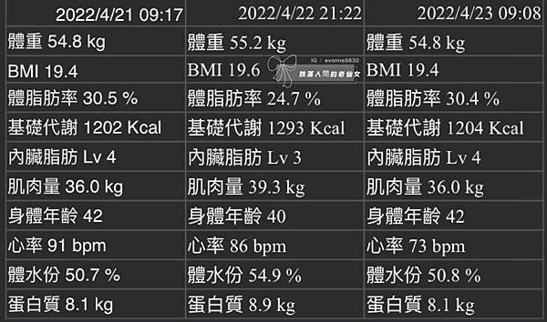 我試著在第2天的時候,在晚上上完高強度的有氧課程後量測看看... 結果真的有差!