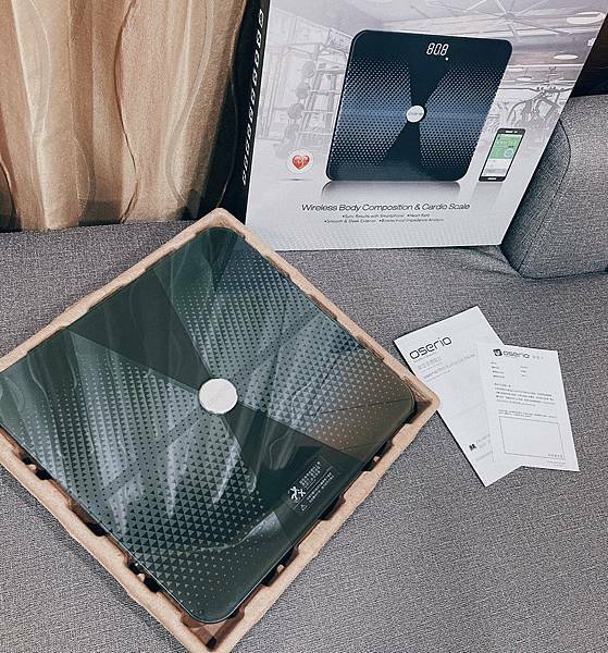 實體是鋼化玻璃真的很漂亮,沒有傳統體重計的笨重感,擺在玄關不說還不知道它是心律體脂計