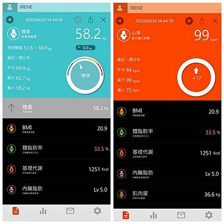 體重 / BMI / 體脂肪 / 內臟脂肪 / 心率 /