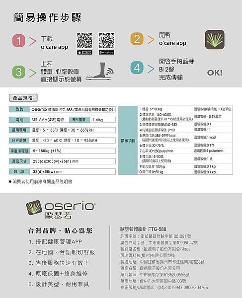- Oserio 歐瑟若 專利心率體重體脂計 -