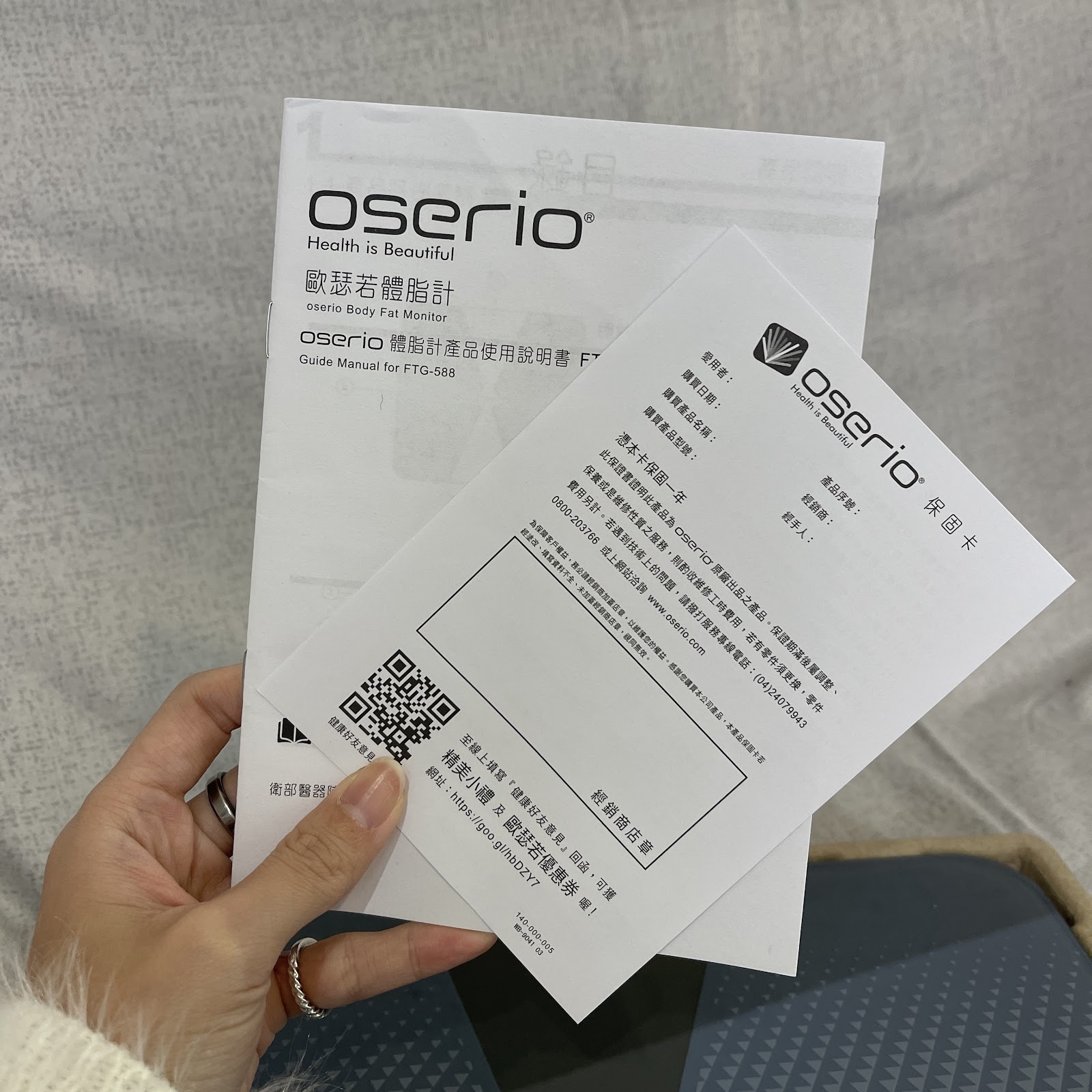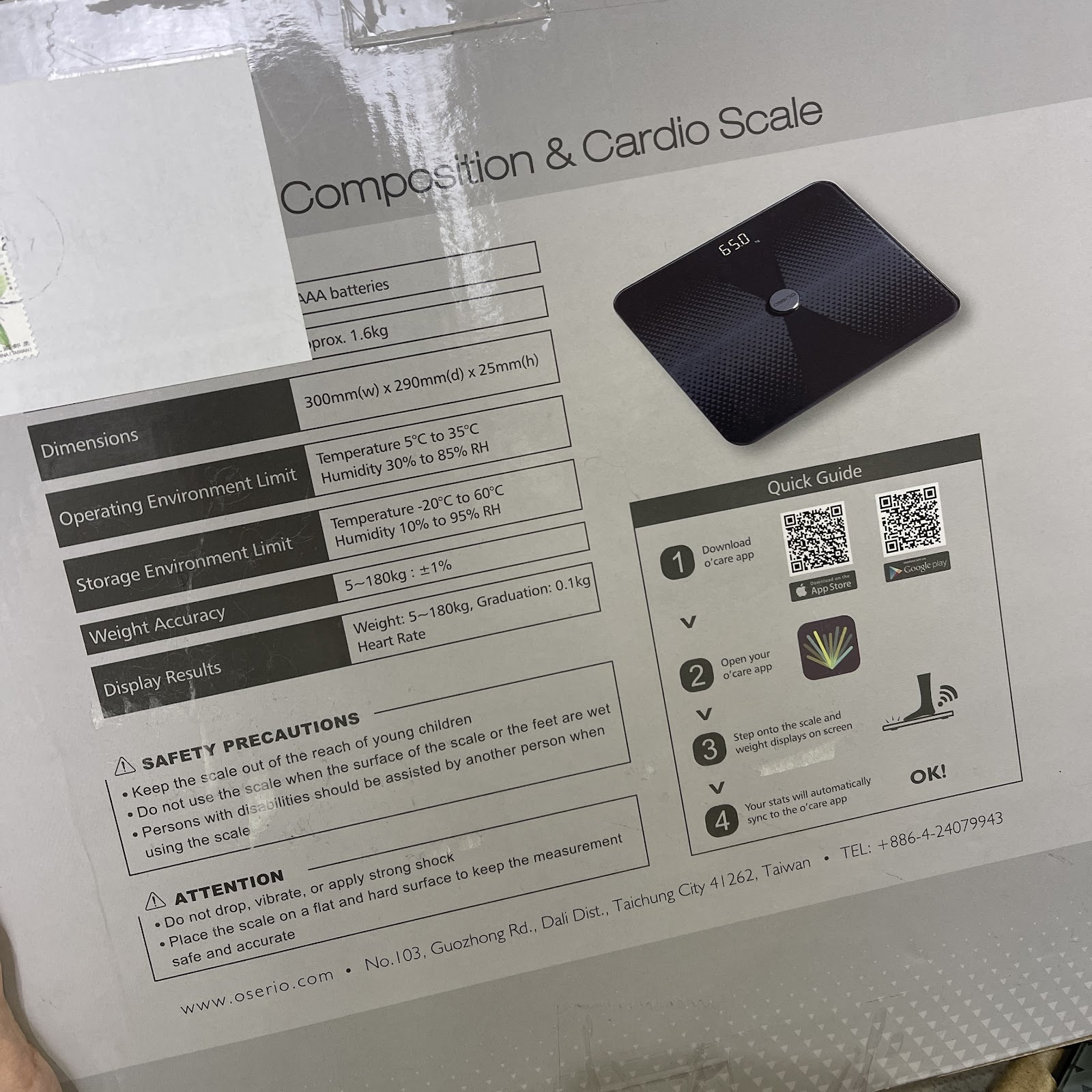歐瑟若心率體脂計盒子的背面有QR CODE可以掃描,下載他的APP程式