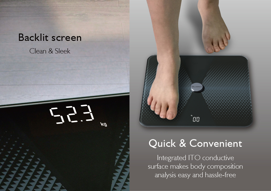 Analyze body composition and heart rate quickly and conveniently, and evaluate training effectiveness! Results are automatically synced with your smartphone via the free O'Care App, available for both iOS & Android devices. Track results easily without pen and paper!