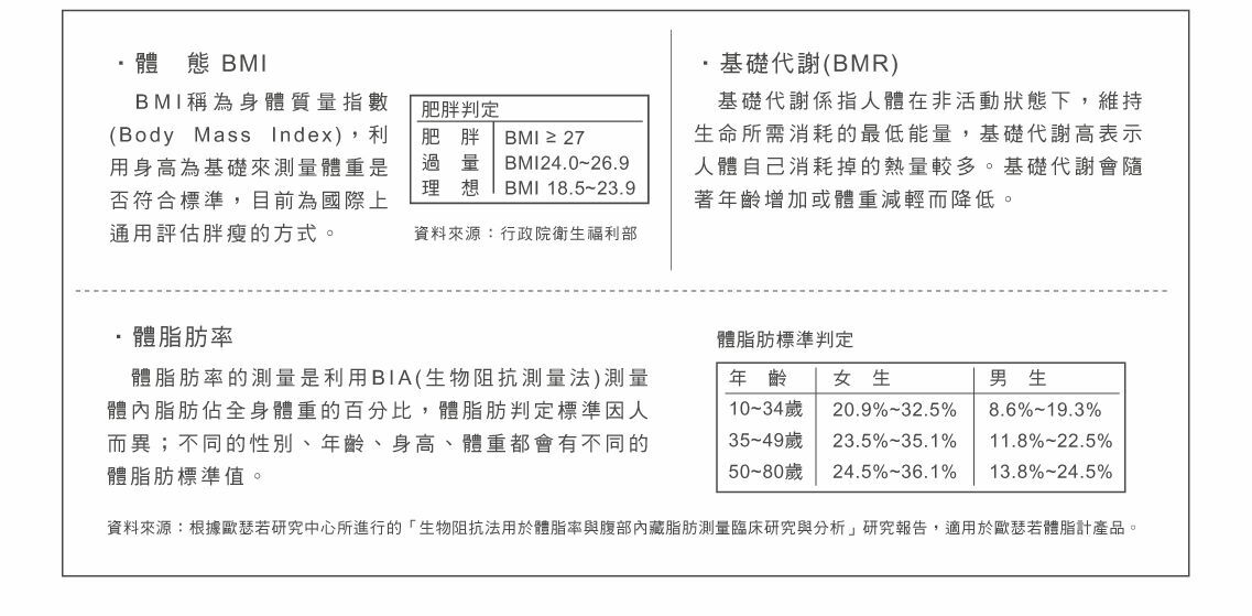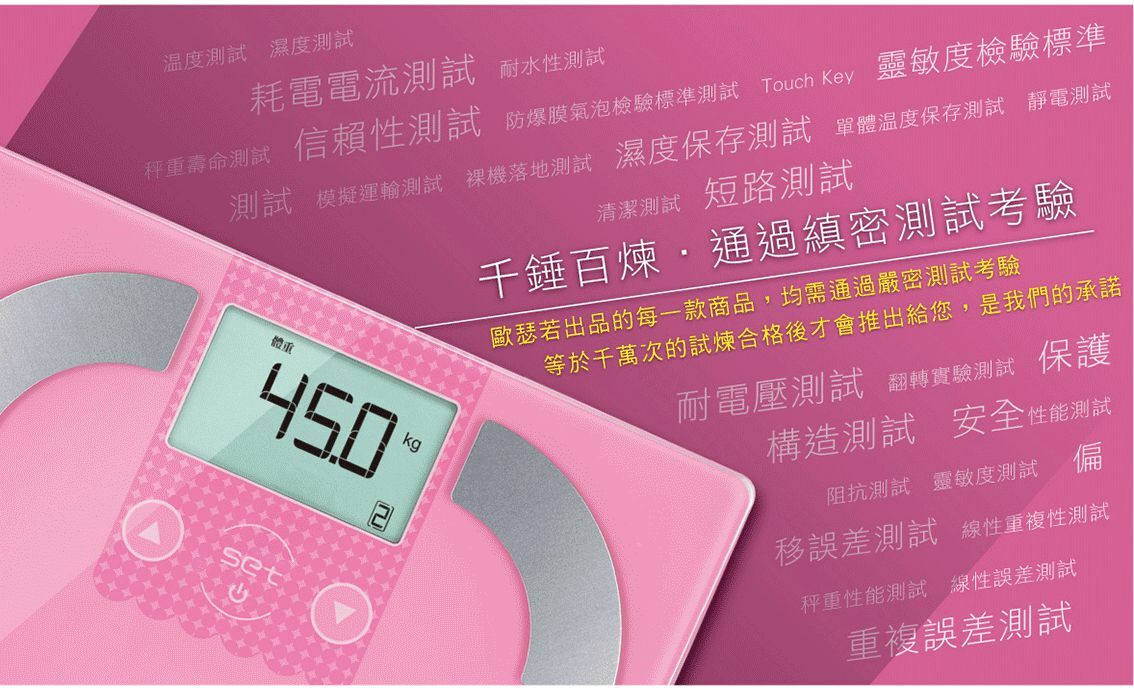 | 備註 | 體內裝設有醫療電子儀器(如:心律調整器 ...等), 請勿使用本產品,否則可能會影響植入式醫療器材。 孕婦及體內裝設有金屬物件者,不建議使用本產品, 否則可能會影響量測準確度。 請勿讓幼童接觸本產品。 |
